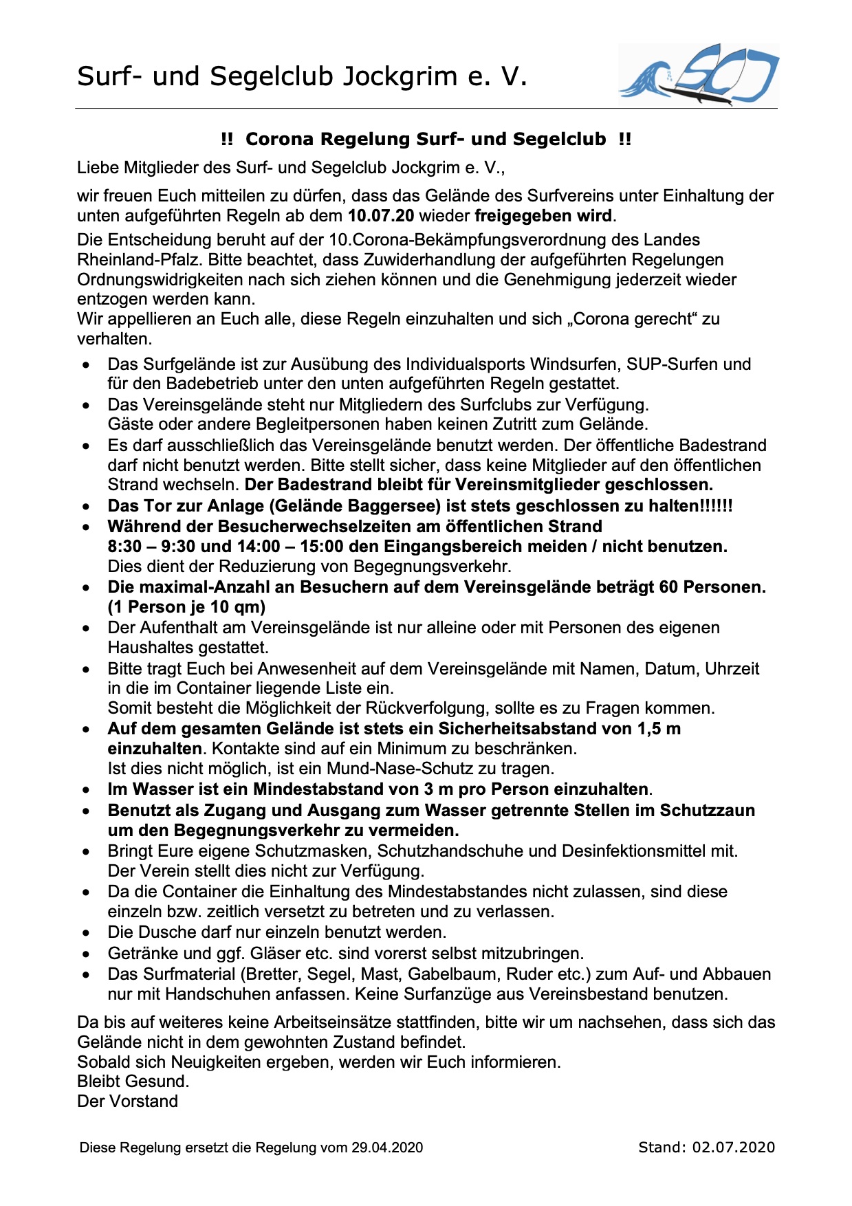 Auch können wir nach Abstimmung mit der Gemeinde den Badebetrieb auf dem Surfgelände wieder freigeben.